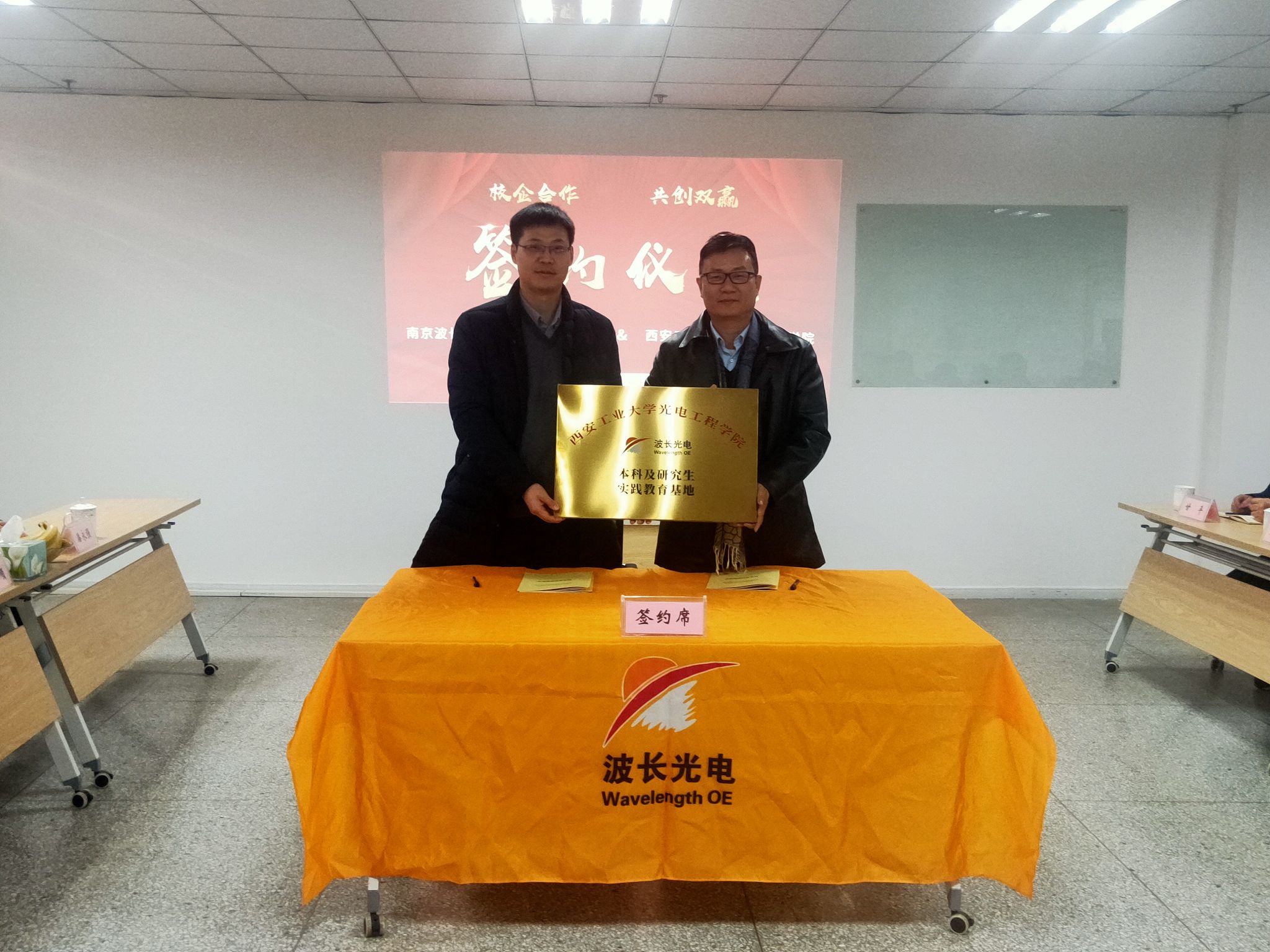 2023年12月21日,太阳成集团tyc122ccvip-南京波长光电科技股份有限公司“校企合作签约”暨“实践教学基地”揭牌仪式在南京波长光电科技股份有限公司隆重举行。太阳成集团tyc122ccvip光电工程公司党委书记周顺、副经理潘永强、副书记杨利红、教学实验中心主任李宏,波长光电董事长黄胜弟、总经理吴玉堂等公司领导及部分员工出席了本次活动。