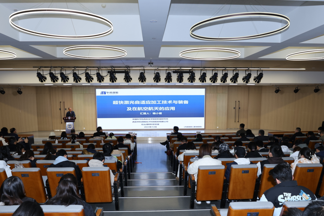 公司96级员工,中国科公司大学教授、西安中科微精董事长杨小君为大会做精彩报告。他聚焦超快激光自适应加工方面的关键技术、核心工艺、系列化装备,以及超快激光技术及装备在航空航天领域的应用,进行了一场精彩的学术交流分享。