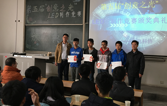 光电测试技术研究所党支部以夯实员工的专业知识,提高实践动手能力为目的,成立了教师技术指导小组,为本届‘创意之光’LED制作竞赛提供全程技术指导。针对参加竞赛的员工实际工程能力不足的现状,开设了相应的技能培训,实际指导员工焊接调试电路板,编写单片机程序,优化光源显示效果。考虑到员工专业基础知识比较欠缺,为参赛员工提供了专门的培训场地。从设计方案的确定到LED的灯展的成功举办,党支部全体党员同志以“特殊党费”的形式为此次活动提供了的奖金支持。