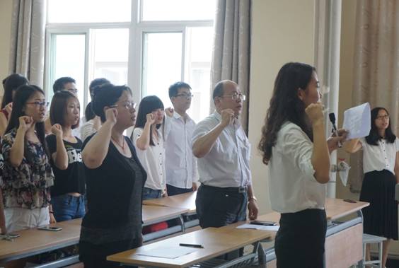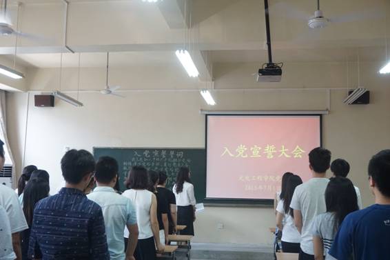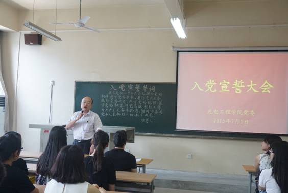 为庆祝中国共产党成立94周年,进一步增强员工党员党性意识,7月1日,光电工程公司党委在未央校区工6-402教室隆重举行了入党宣誓大会。公司党委书记弥谦、副书记陈彤,各员工党支部书记,42名新发展的党员及部分员工党员代表参加了仪式。