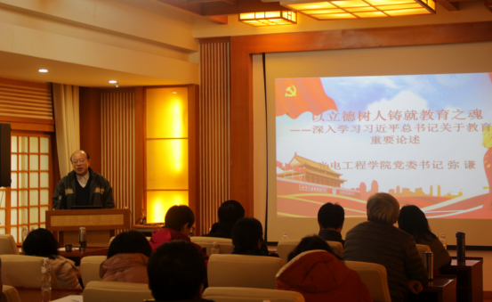 会上,弥谦以“以立德树人铸就教育之魂——深入学习习近平总书记关于教育的重要论述”为题,带领全体教师党员学习了习近平总书记关于教育的重要论述和全国教育大会精神。