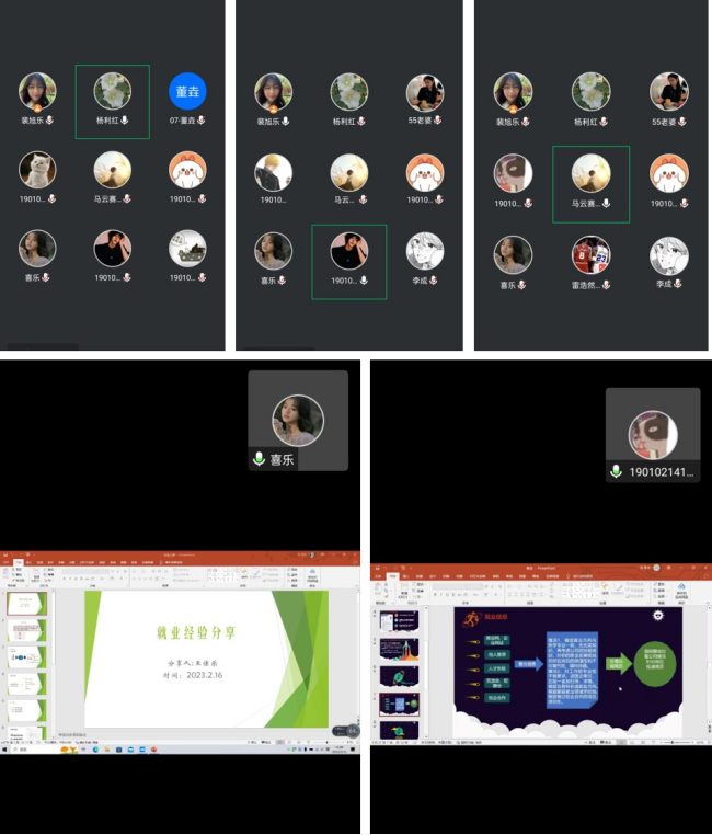 其次,由4名员工代表发言。第一位测控的康董董同学,从招聘资源、简历排版和面试技巧三个方面讲述了自己的面试经验。丰富同学们的招聘资源、提高简历的初筛率以及应对面试官的问题应答技巧。第二位光信息的王佳乐同学,主要从如何编写一份好的简历以及面试中的应注意事项,系统性的为同学们介绍了求职的流程,使同学们对求职的步骤有了清楚的认知。第三位电科的洪恩华同学结合自己的面试经验,提醒同学要及时关注校内外招聘会,为同学们提供了更多的招聘渠道。还说明了三方签订后的注意事项,使同学们受益匪浅。第四位同学是就业处的助理马云赛同学,更专业的为大家介绍了网签系统、线上签约和线下签约的流程,以及需要注意的问题,使同学们在新版签约系统中不犯难。最后,雷浩然和裴旭乐分别从求职准备以及就业服务通道等方面给同学们分享了经验。