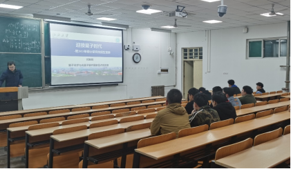 首先,闫智辉教授给同学们做了关于量子光学及量子信息前沿研究进展的精彩报告。随后,介绍了山西大学光电研究所的主要研究领域及方向,并且围绕着研究方向对各研究室进行了介绍,对部分研究成果进行了展示。其次,介绍了山西大学光电研究所的研究生生活,主要说明了近几年毕业员工的就业情况。最后,向大家介绍了最新考研招生名额及调剂信息。