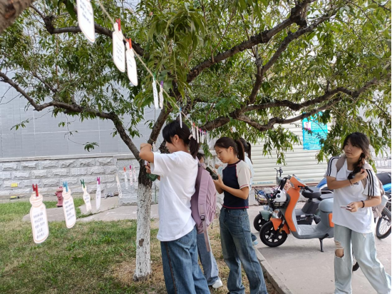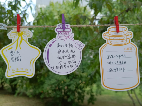 从早上9:00直到下午16:00,莘莘学子课间时间陆续来到活动场地。领取我们准备的祝福卡,诚挚地写上满满的祝福。或带走送给最喜爱的老师,或悬挂在心愿树上。每一张贺卡、每一句话,都充满着对老师们最真挚的感谢。在这个特殊的日子里,同学们用真挚的语言讲述着老师们的辛勤付出和对自己的关爱,用自己的方式向老师传递心中的敬意与感谢。