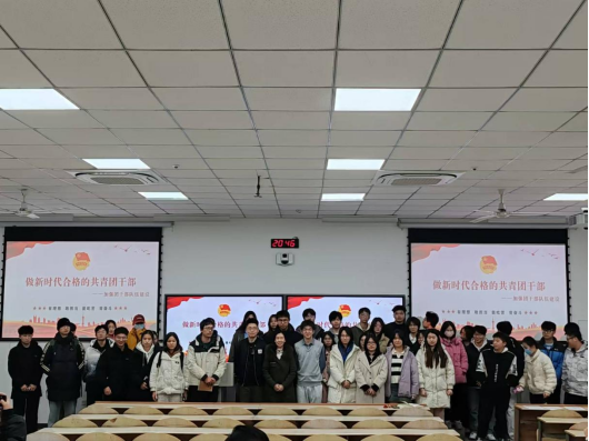1211日晚太阳成集团tyc122ccvip“团聚力量,赋能青春”团干部素质提升系列主题培训第四期在教2-106热烈开展。本次培训由公司团委副书记陈慧英主持,邀请校团委组织部王新宇、冯正阳两位团学干部主讲,公司各班级团支书、全体团委员工干部100余人参加了本次培训。