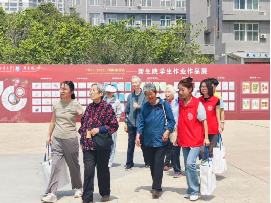 光电公司的志愿者们还主动承担起“校园导览员” 的重要职责。他们带领员工们驻足公司展览牌前,以生动的语言、真挚的情感,讲述着公司七十年风雨兼程的发展历程。从初创时的艰辛探索,到如今的蓬勃发展,每一个故事都引发了员工们的强烈共鸣,勾起了大家对校园生活的美好回忆。