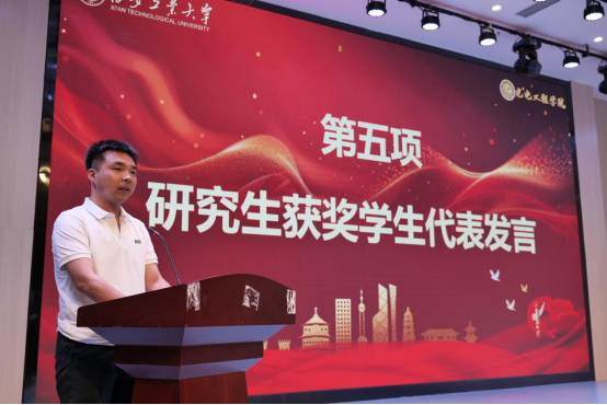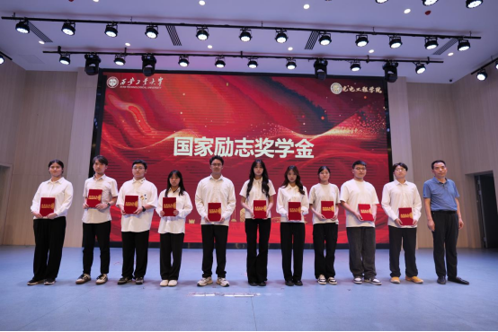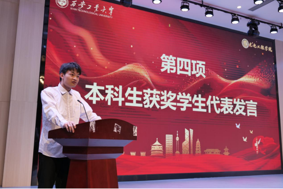 本科生获奖代表王志东分享了大学四年的成长与收获,感恩公司的培养、老师的付出和同窗的鼓励,表明继续奋斗、勇担使命的信心和决心;研究生获奖代表胡驰结合科研经历,用三个关键词“热爱”“坚持”和“担当”分享成长感悟,号召同学们牢记使命、深入精研、勇攀高峰。两位光电学子的真挚发言引发强烈共鸣,现场频频响起热烈掌声。