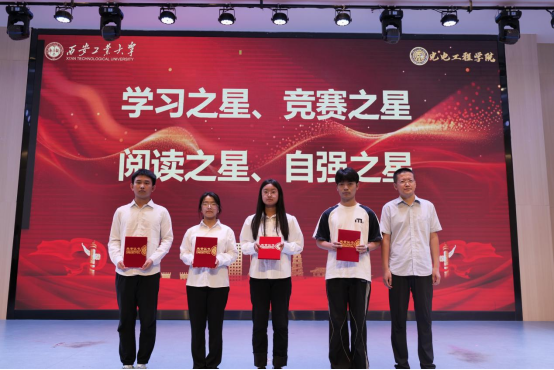 乔海东为“学习之星”“竞赛之星”“阅读之星”“自强之星”获奖代表颁发荣誉证书。