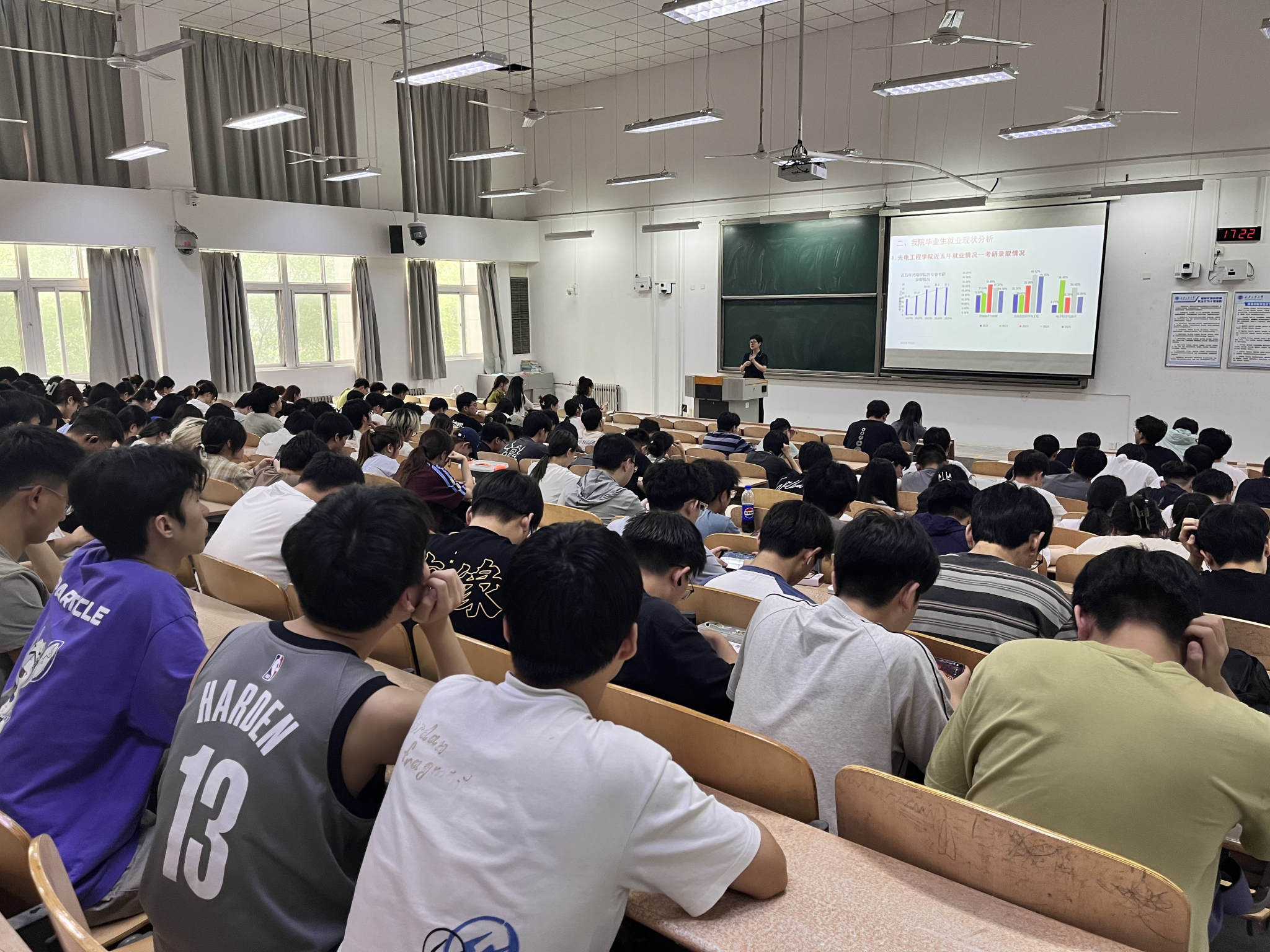 杨利红首先对当前的就业形势进行了深入剖析,强调在复杂形势下保持清醒认知、提前谋划的重要性。针对光电专业特点,她结合公司历年就业数据,详细解读了近年来公司毕业生的就业去向、行业分布、薪资水平及深造情况等,让同学们对本专业的就业方向和前景有了更清晰的认识。同时,鼓励同学们积极主动投身到就业准备中,树立正确的就业观念,拓宽就业视野。