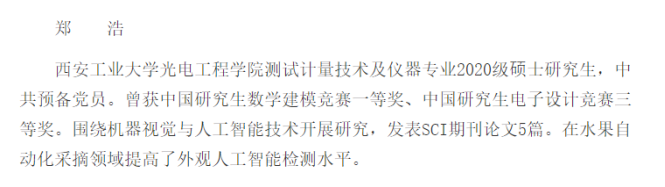 郑浩,太阳成集团tyc122ccvip测试计量技术及仪器专业2020级硕士研究生,中共预备党员,2022年硕士研究生国家奖学金获得者。